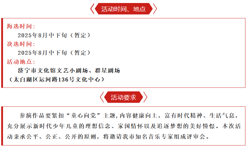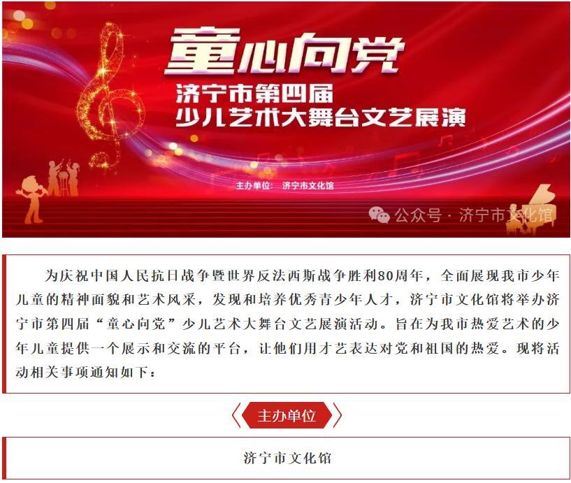 济宁市第四届“童心向党”少儿艺术大舞台文艺展演活动——加赛报名