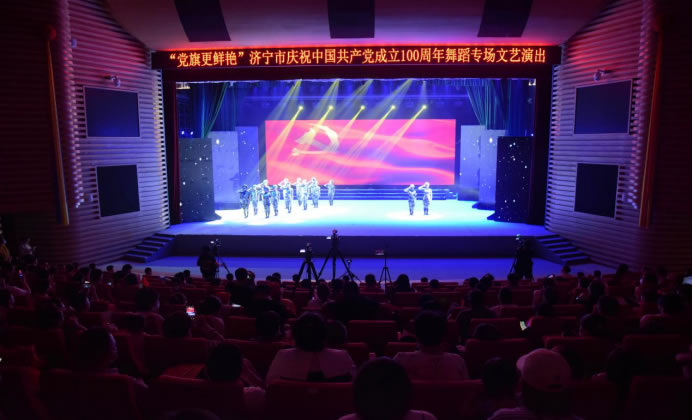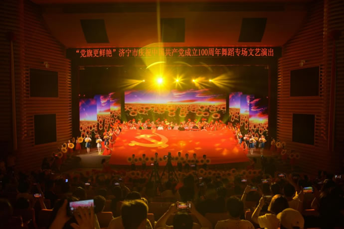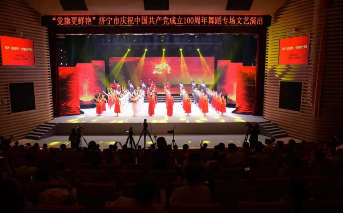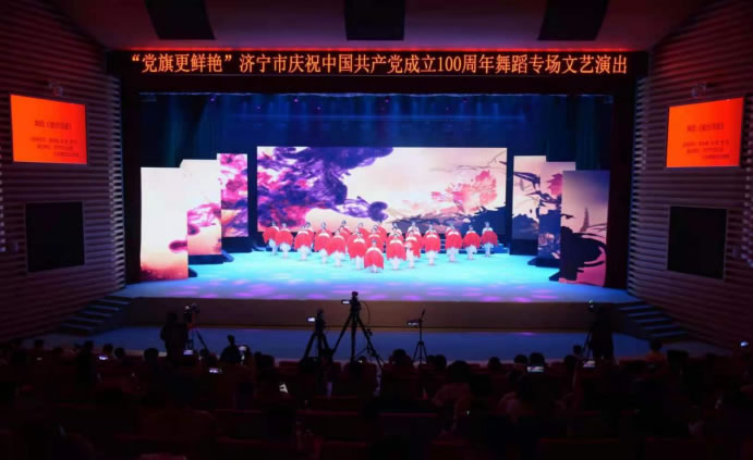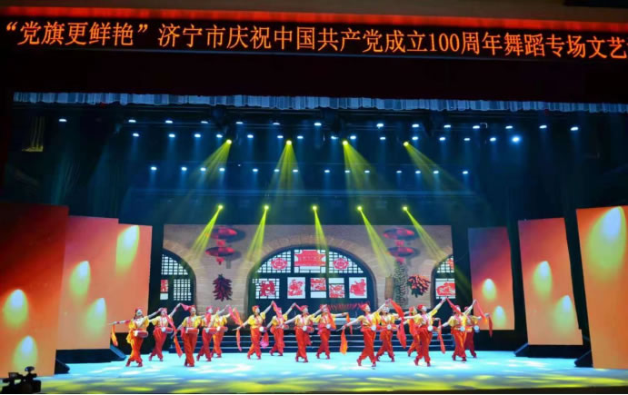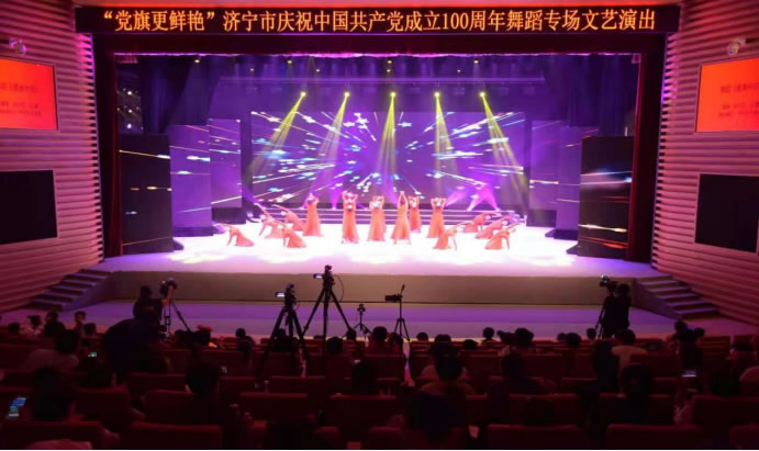 七月的天空流光溢彩,七月的大地笑语欢歌。为庆祝中国共产党成立100周年,由济宁市文学艺术界联合会、济宁市文化和旅游局、济宁市广播电视台主办,济宁市舞蹈家协会、济宁市文化馆、济宁艺术剧院承办的“党旗更鲜艳”济宁市庆祝中国共产党成立100周年舞蹈专场文艺演出于7月13日晚19:30分在济宁市文化馆群星剧场成功举办。