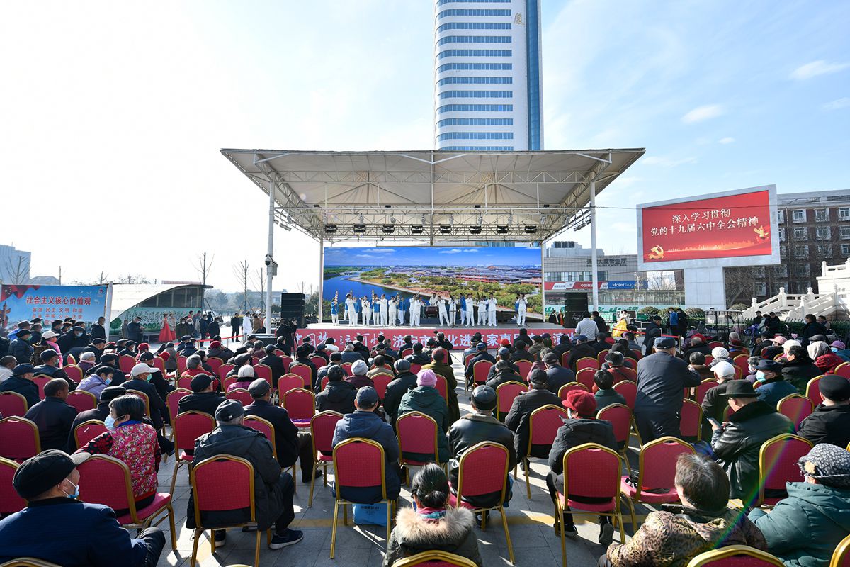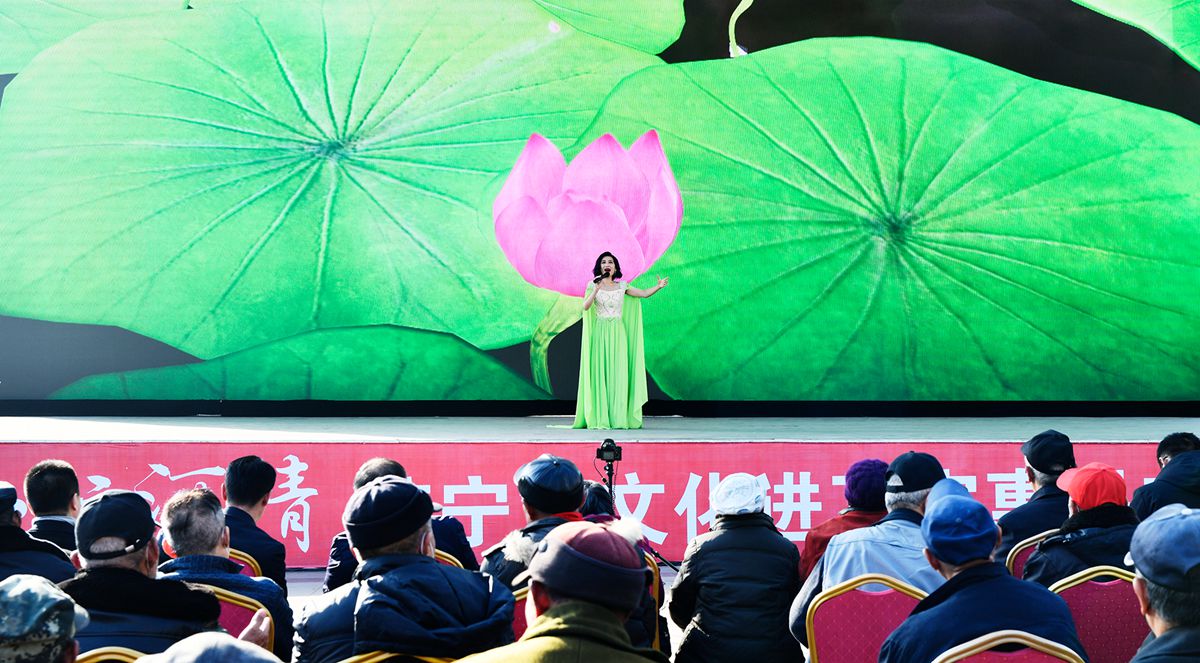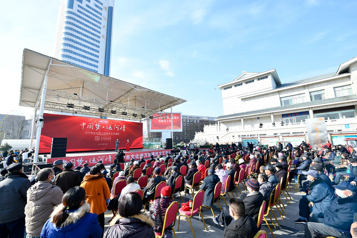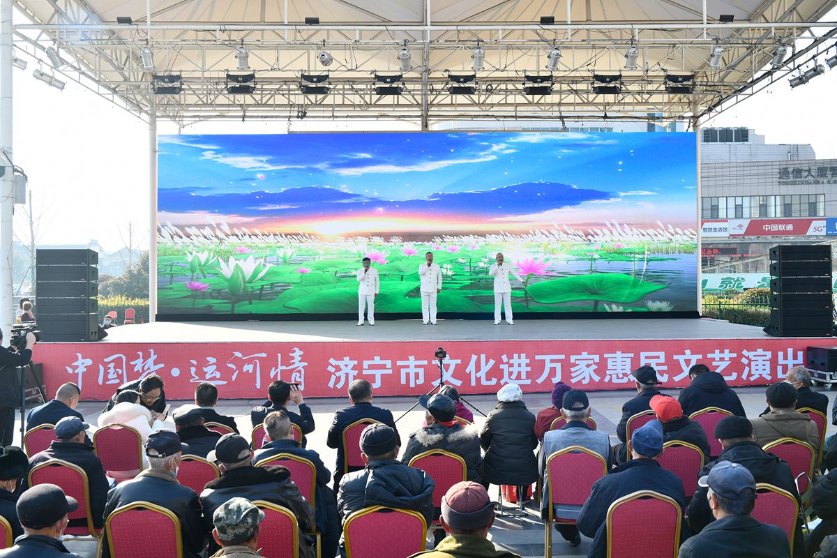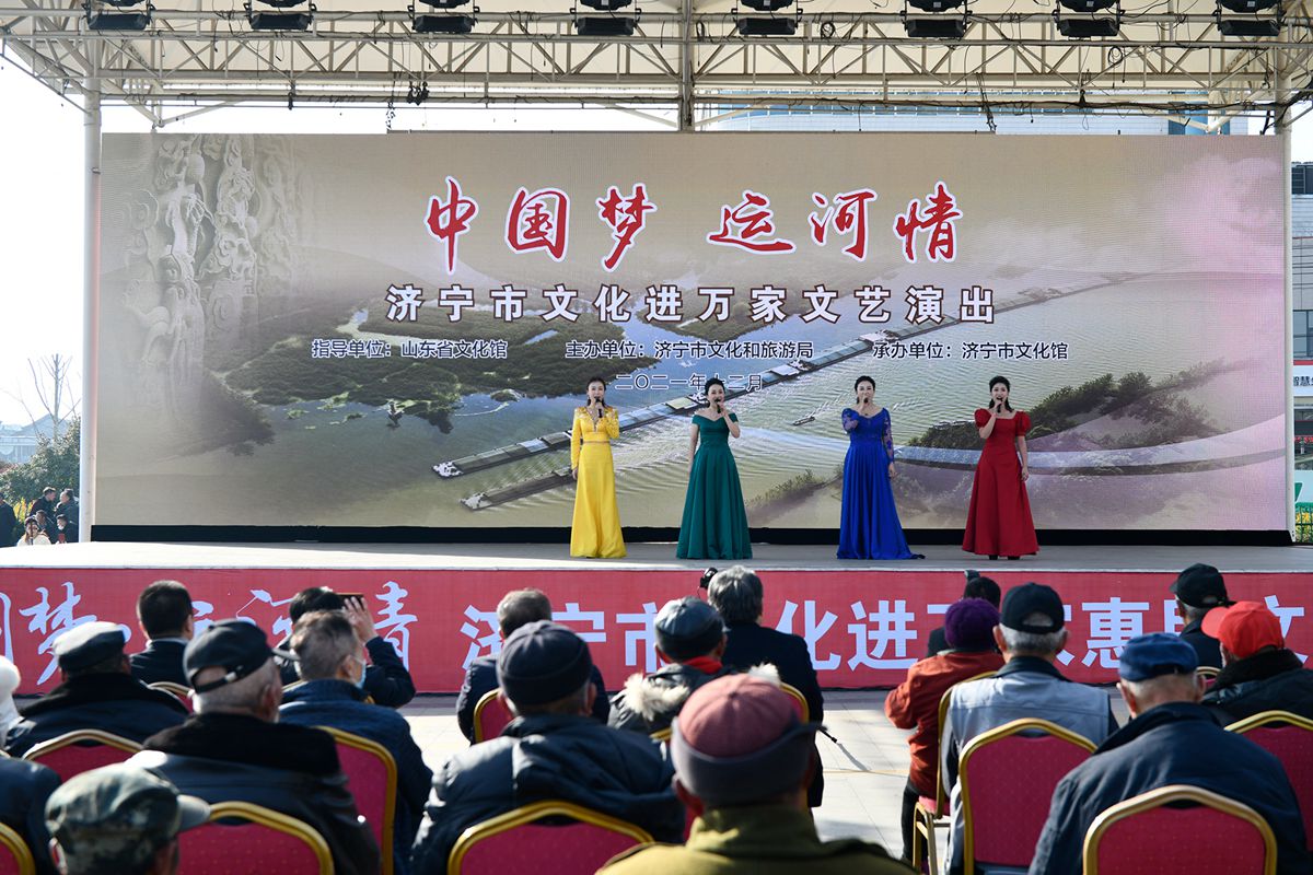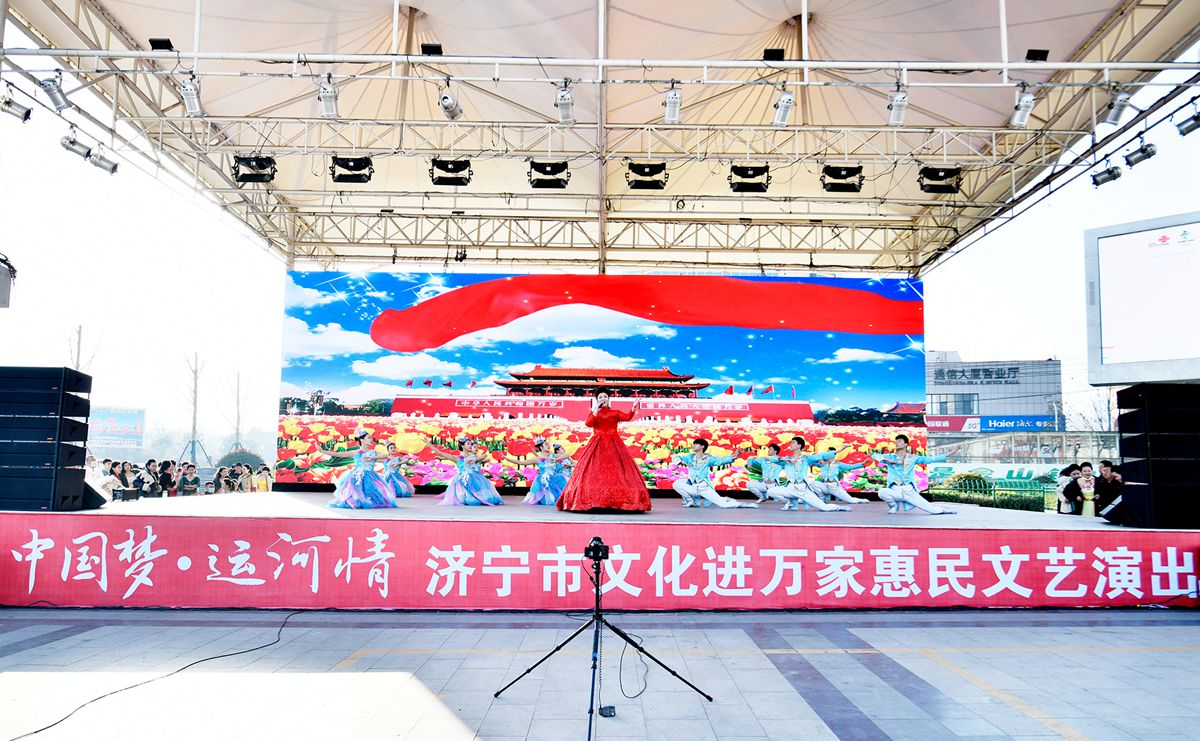 为全面贯彻党的十九届六中全会精神,深入学习落实习近平新时代中国特色社会主义思想和习近平总书记文艺座谈会重要讲话精神,2021年12月20日,由山东省文化馆指导,济宁市文化和旅游局主办,济宁市文化馆承办的“中国梦•运河情”2021济宁市文化进万家文艺演出活动,在济宁运河文化广场市民大舞台顺利举行,本次活动全面展示了我市在文旅融合、群众艺术精品创作、公共文化服务体系建设、文化惠民等方面取得的成果。