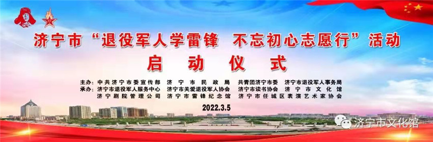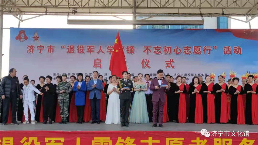 3月5日下午,由中共济宁市委宣传部、市民政局、共青团济宁市委、市退役军人事务局主办,市退役军人服务中心、市关爱退役军人协会、市文化馆、济宁剧院管理公司等单位承办的“退役军人学雷锋、不忘初心志愿行”活动启动仪式在市文化广场隆重举行。