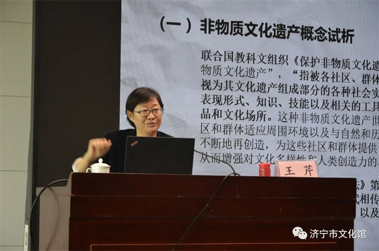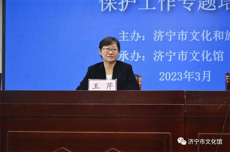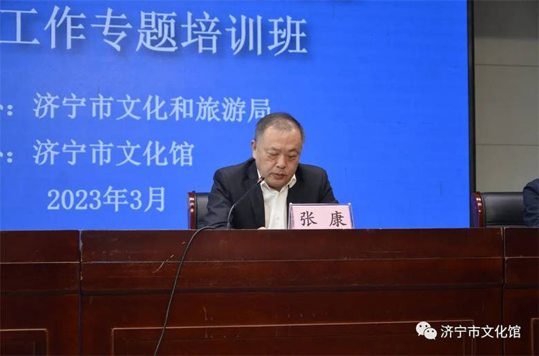 本次培训由济宁市文化和旅游局主办,济宁市文化馆承办。济宁市文化和旅游局一级调研员张康同志参加开班仪式并讲话,山东省文化馆副馆长、山东省非物质文化遗产保护中心副主任王芹,以“山东省非物质文化遗产保护实践相关问题”为主题进行了授课,各县市区文旅局非遗科、文化馆相关负责人及专职工作人员共计50余人参加了培训。