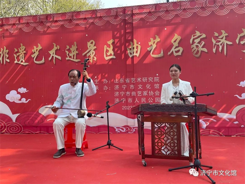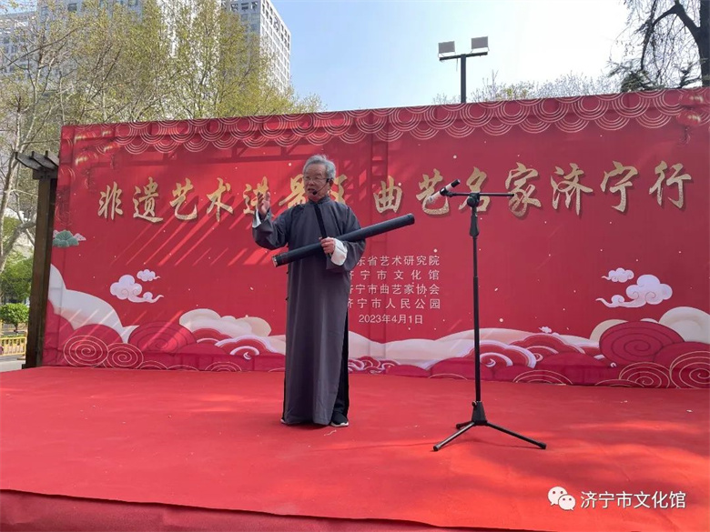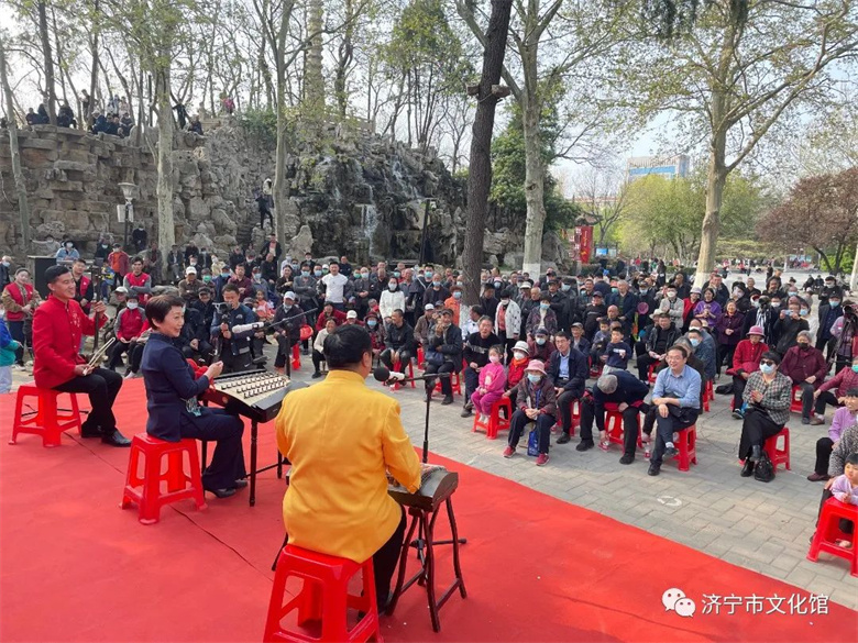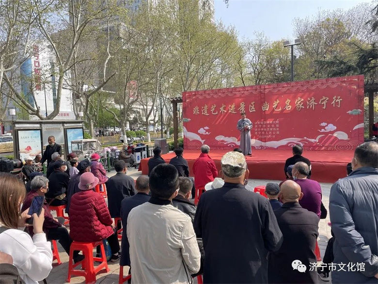4月1日下午,由山东省艺术研究院主办,济宁市文化馆、济宁市曲艺家协会、济宁市人民公园承办的“非遗艺术进景区,曲艺名家济宁行”活动在人民公园东侧的“小土山曲艺广场”隆重举办,来自全国的十余位国家级或省级曲艺非遗传承人,在这个有着深厚底蕴的传统曲艺地标式场所为群众奉献一台精彩的曲艺演出。