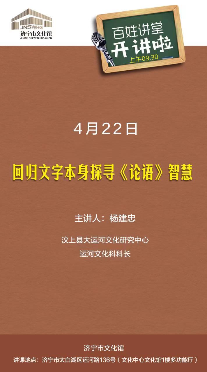 2023年4月22日《文化济宁 百姓讲堂》课程安排