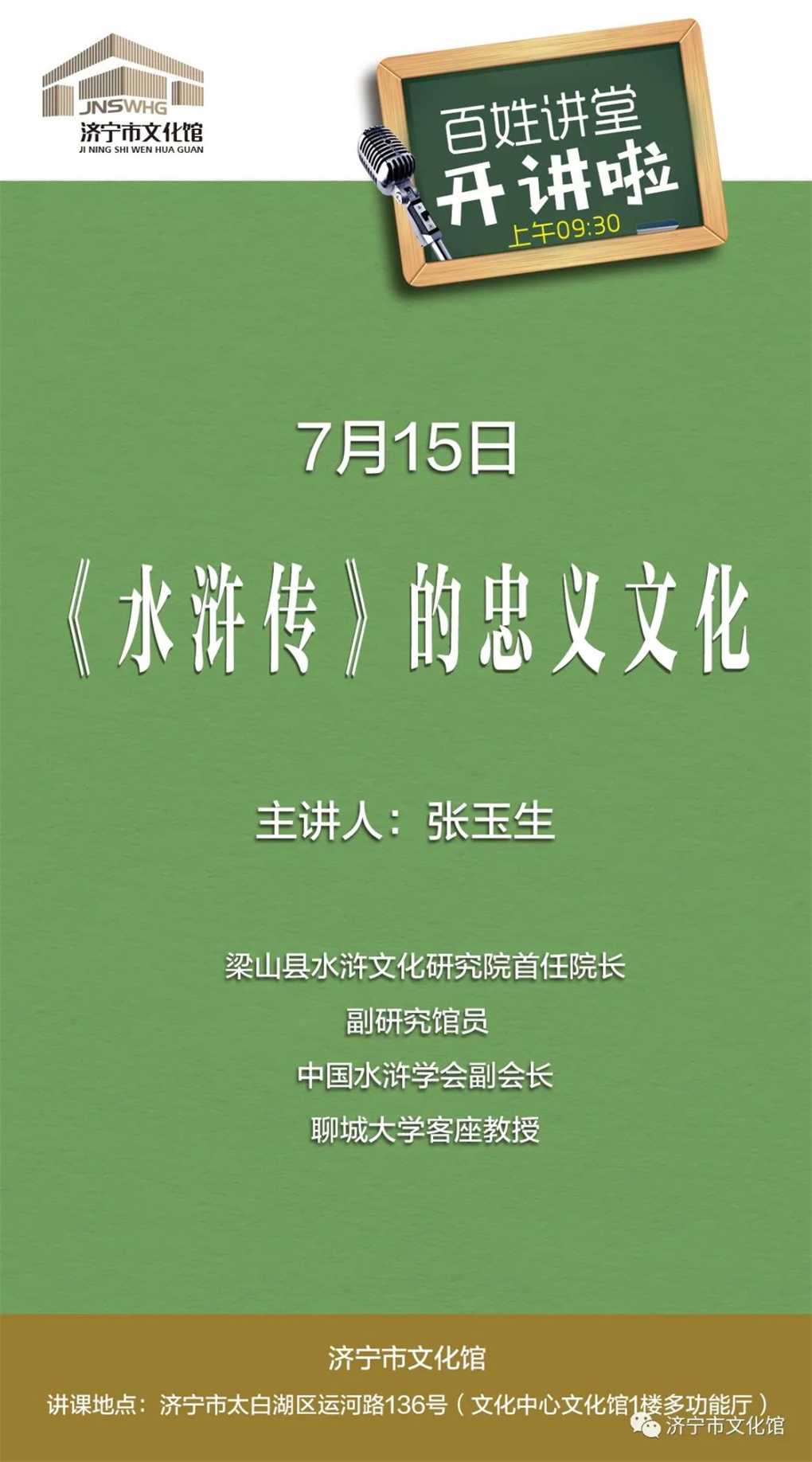 2023年7月15日《文化济宁 百姓讲堂》课程安排!