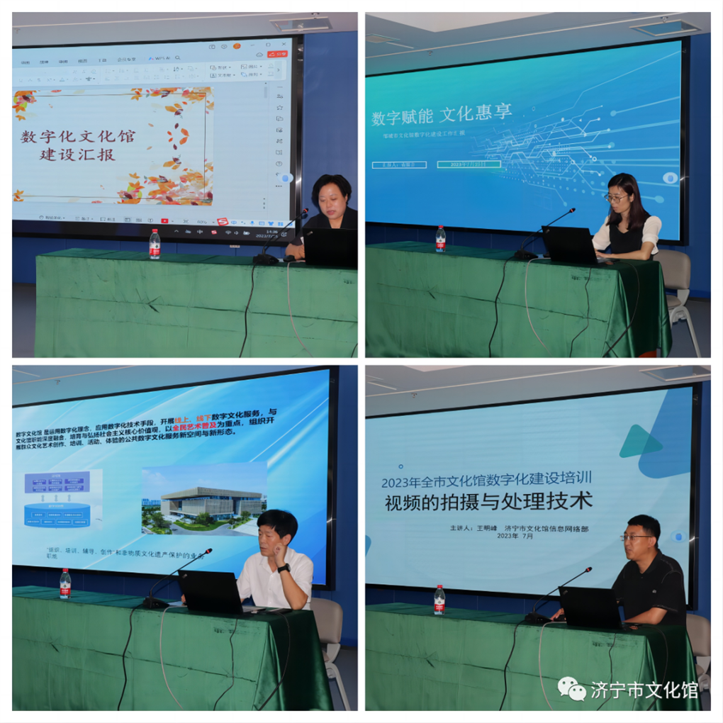 梁山县文化馆馆长郑冰、邹城市文化旅游公共服务中心数字信息服务部主任袁振吉进行了交流发言。济宁市文化馆信息网络部主任于双奎讲授了《网络信息的发布》课程,馆员王明峰讲授了《视频的拍摄与处理技术》课程。