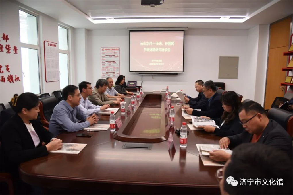 “云山水月—王未、孙振民书画课题研讨会”同期举办,济宁市孔孟书画院书记、院长、济宁印社社长、济宁市书协副主席郑志群,济宁市文化馆党总支书记、馆长张华锋,济宁学院美术学院院长、济宁市青年美协主席张继华,济宁市孔孟书画院副院长、济宁市美协副主席王德亮,山东理工职业学院特聘教授屈焕新,济宁市文化馆副馆长、济宁市青年书协主席李富荣等专家学者参加座谈会并发言。