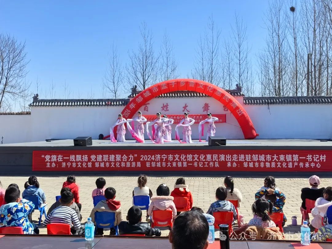 3月20日,由济宁市文化馆、邹城市文化和旅游局、驻邹城市大束镇第一书记工作队主办,邹城市非物质文化遗产传承中心承办的“党旗在一线飘扬 党建联建聚合力”2024济宁市文化馆文化惠民演出走进邹城市大束镇灰埠村开展文化惠民演出活动。