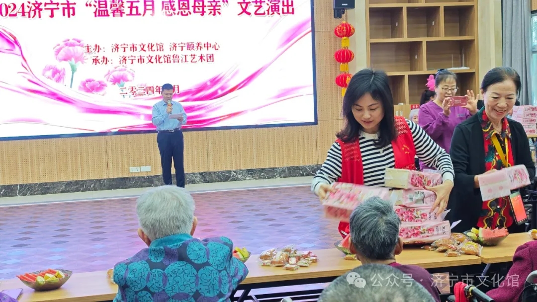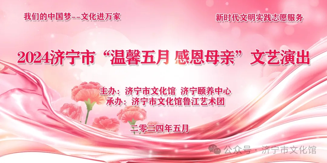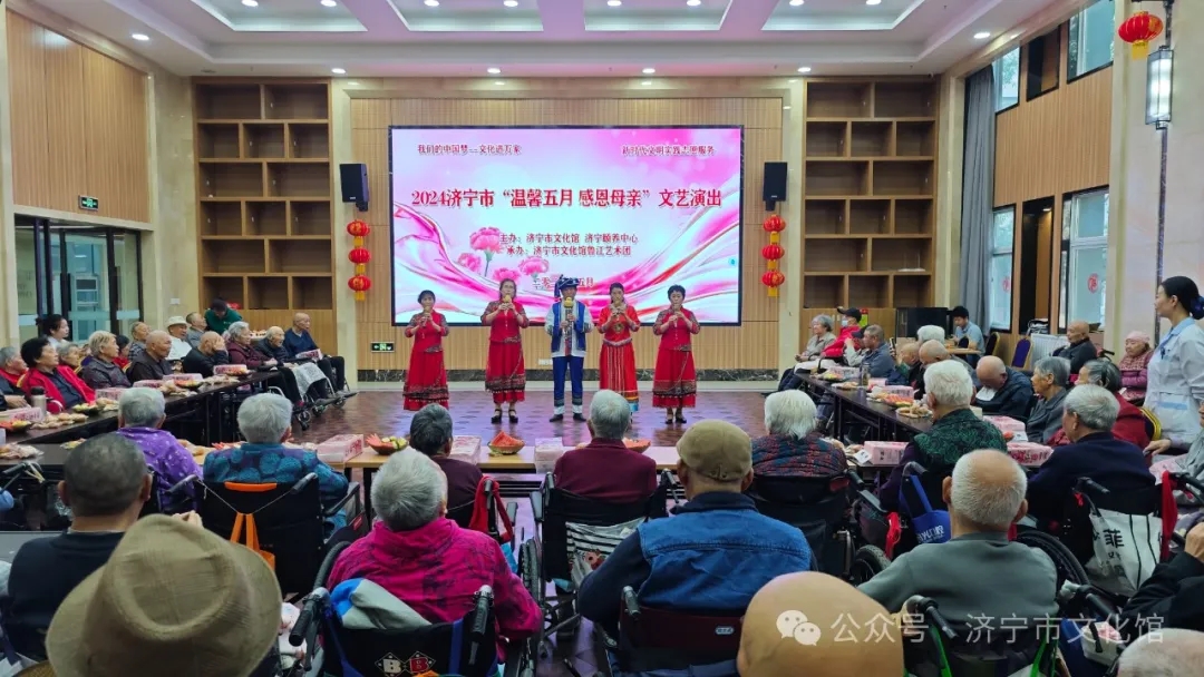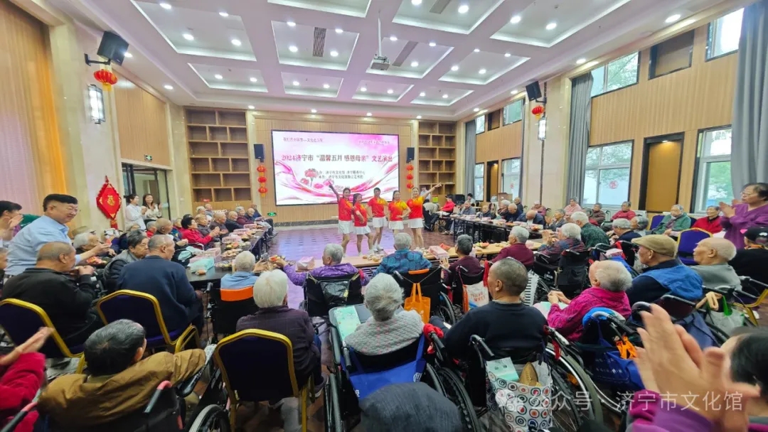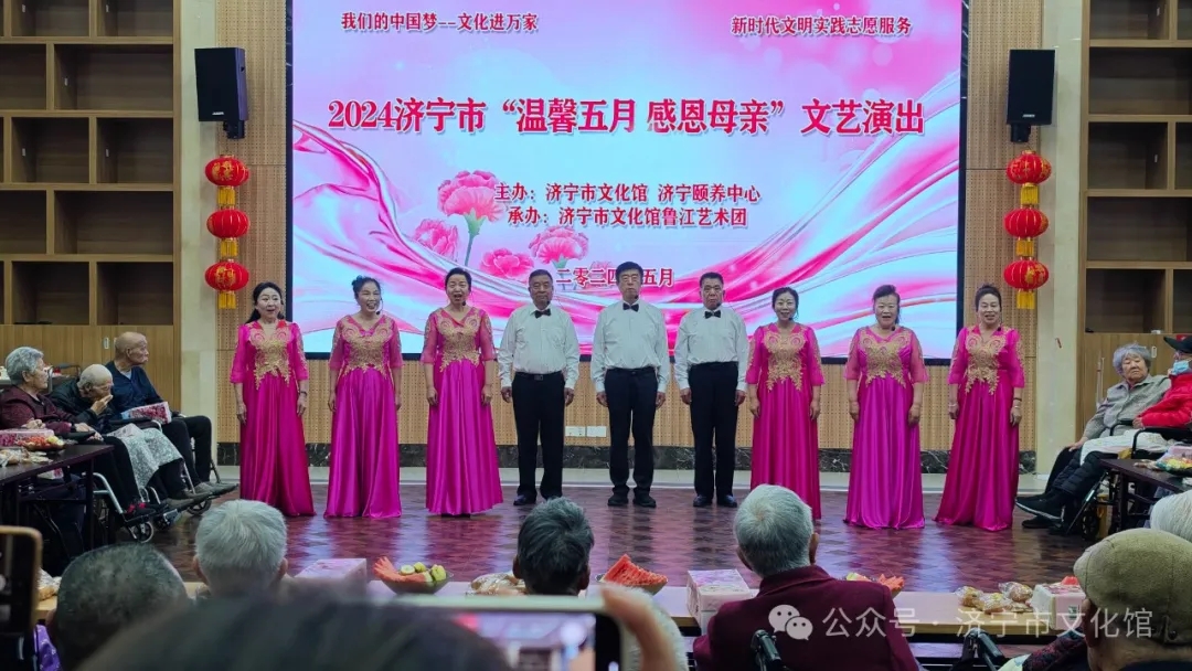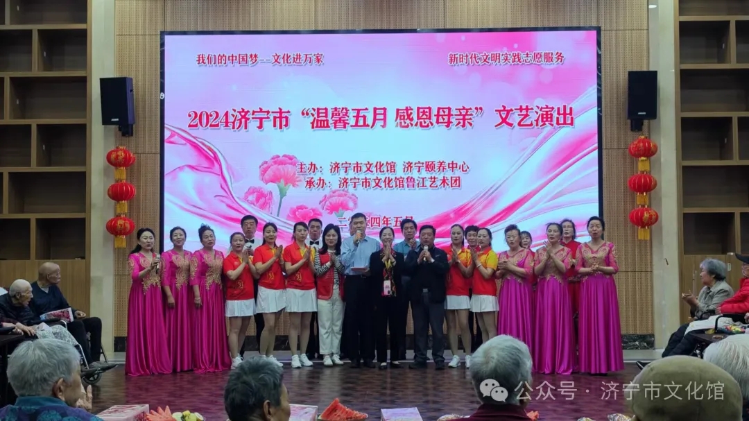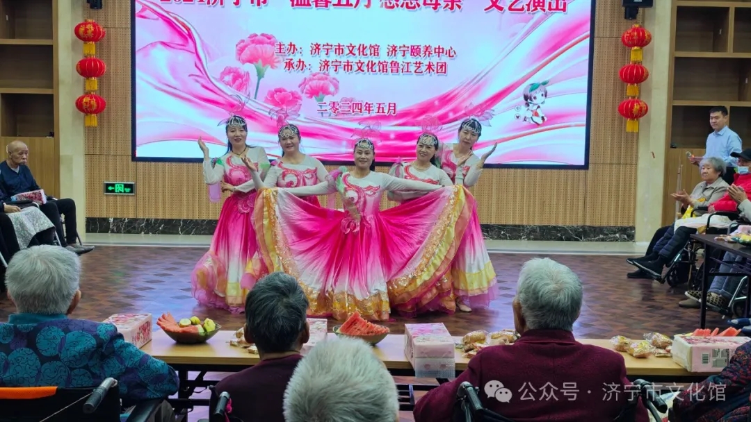 5月10日,由济宁市文化馆、济宁市颐养中心主办,济宁市文化馆鲁江艺术团承办的2024“温馨五月 感恩母亲”文艺演出,在济宁颐养中心成功举办。济宁市文化馆精心准备了舞蹈《美丽中国》、合唱《爱在天地间》、川剧《变脸》等优秀节目,为老人们献上“母亲节”温馨的礼物。