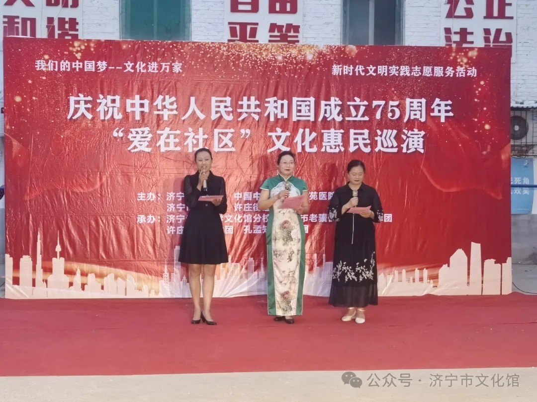 2024年5月25日,为深入贯彻落实习近平文化思想,进一步凝聚文化馆行业力量,提升行业影响力,做好2024年文化馆服务宣传周各项工作,由山东省文化和旅游厅主办,山东省文化馆、济宁市文化和旅游局承办,济宁市文化馆、济宁剧院管理公司执行实施的2024“行走的美育课堂”文艺演出走进工联新春村社区活动成功举办。