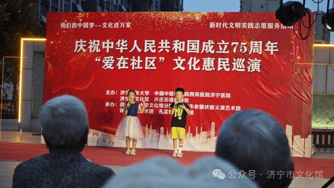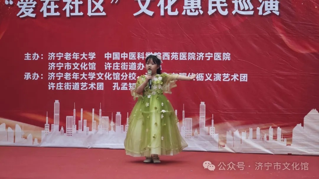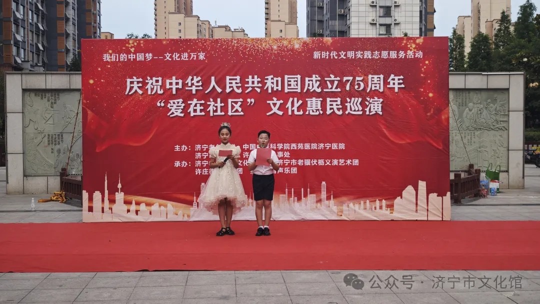 2024年6月1日,为庆祝中华人民共和国成立75周年,丰富驻地居民精神文化生活,提升群众“幸福感 获得感”,由济宁市文化馆、济宁老年大学、许庄街道办事处主办的庆祝中华人民共和国成立75周年文化惠民巡演(“六一”朗诵专场),在许庄街道水运雅居社区成功举办。