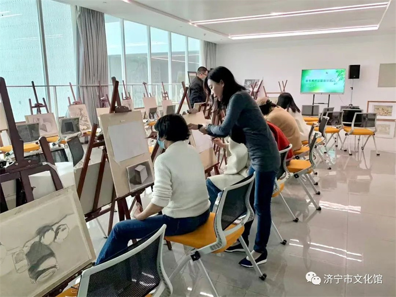 为推进我市公益性群众文化事业,活跃丰富群众文化生活,进一步健全和完善公共文化服务体系,更好地发挥群众文化服务社会的基本职能,推进公共文化服务标准化、均等化建设。济宁市文化馆春季公益培训——“游于艺”美育课堂之硬笔书法班和素描兴趣班于2023年3月18日、22日陆续开课。公益课程培训期间,文化馆的专业老师为学员授课,并配置培训所需设施设备,为学员提供舒适、专业的学习场所。学员们纷纷表示,能在家门口享受到零门槛的专业公益艺术培训课太幸福了。