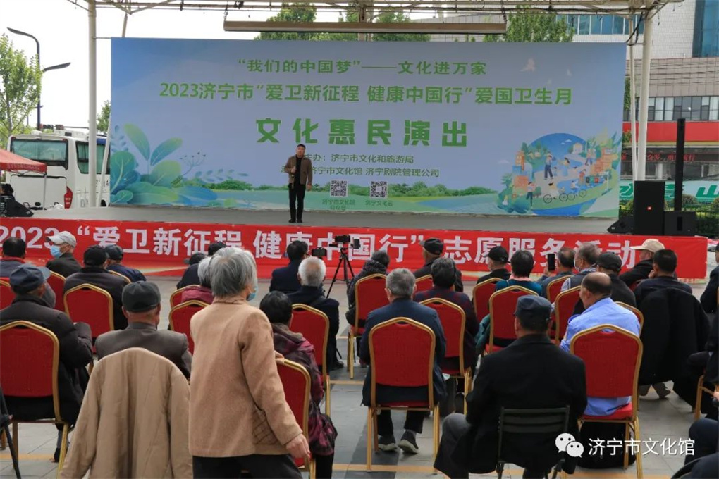 为全面贯彻党的二十大会议精神和习近平总书记对爱国卫生运动70周年的重要指示精神,落实《国务院关于深入开展爱国卫生运动的意见》,引导广大群众养成并持续践行文明健康绿色环保生活方式,由济宁市文化和旅游局主办,济宁市文化馆济宁剧院管理承办的2023济宁市“爱卫新征程 健康中国行”爱国卫生月第二场(安居心连心艺术团)演出在“市民大舞台”成功举办。