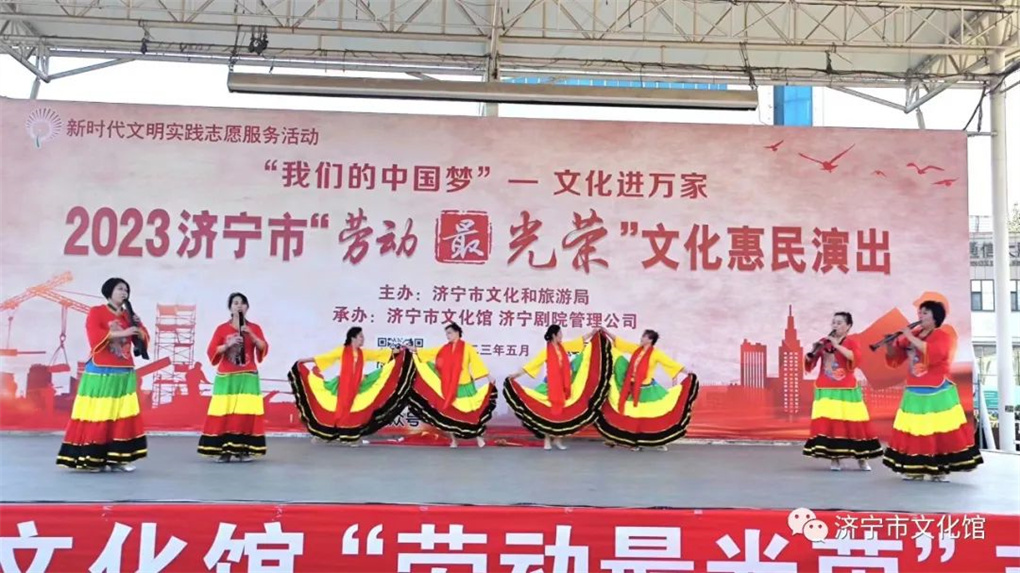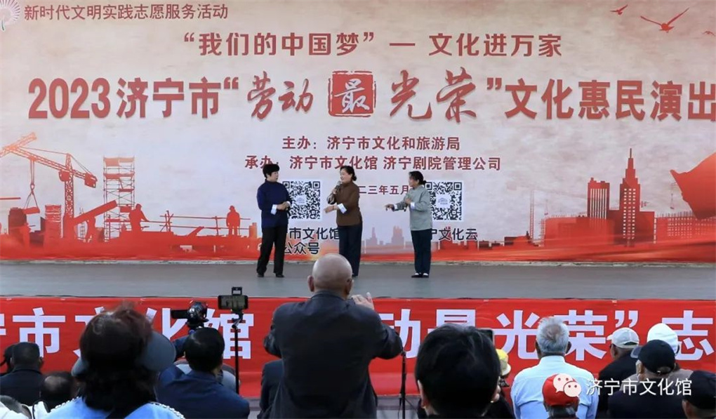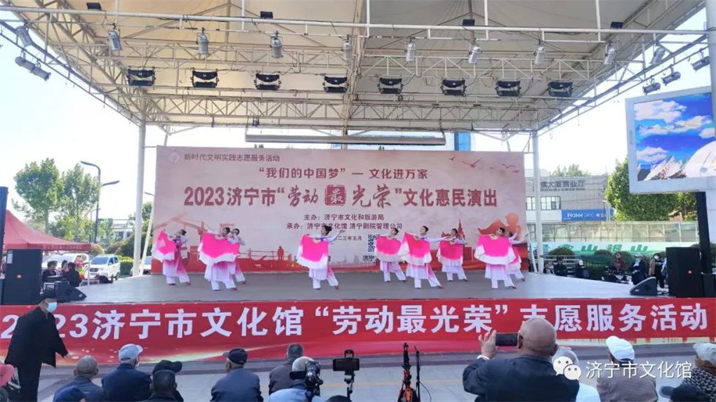 4月29日,为弘扬志愿服务精神,保障广大市民游客在节日期间感受“孔孟之乡运河之都文化济宁”的深厚魅力,进一步营造欢乐喜庆、平安祥和的节日氛围,由济宁市文化和旅游局主办,济宁市文化馆 济宁剧院管理公司承办的2023济宁市“劳动最光荣”文化惠民第一场(儒风艺术团)演出在运河文化广场“市民大舞台”成功举办。