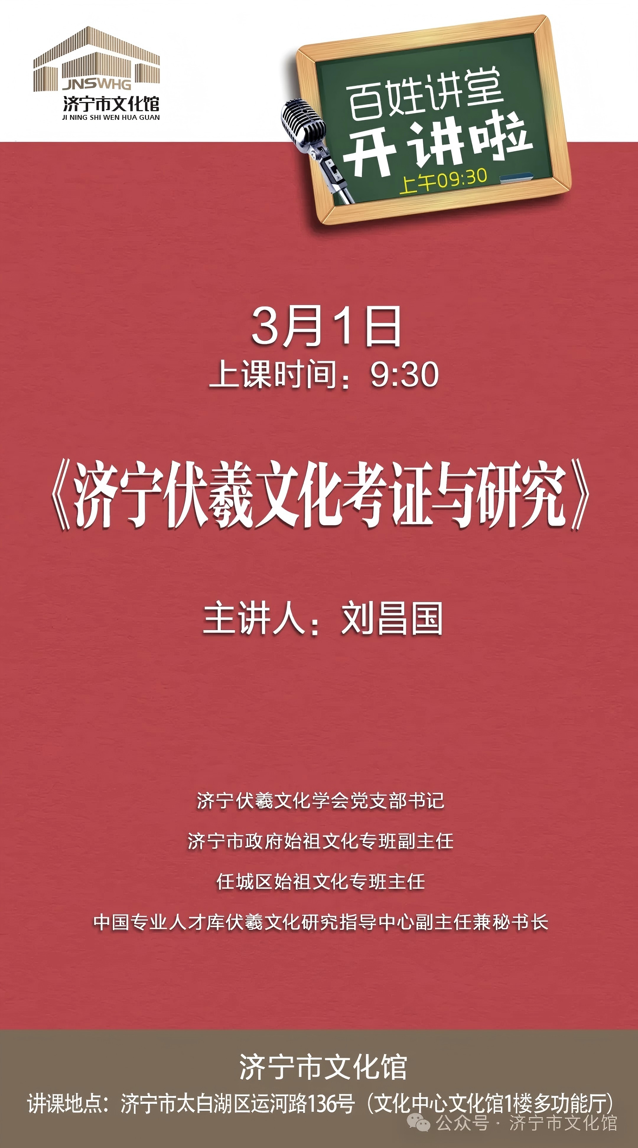 【活动预告】2025年3月1日《文化济宁 百姓讲堂》课程安排