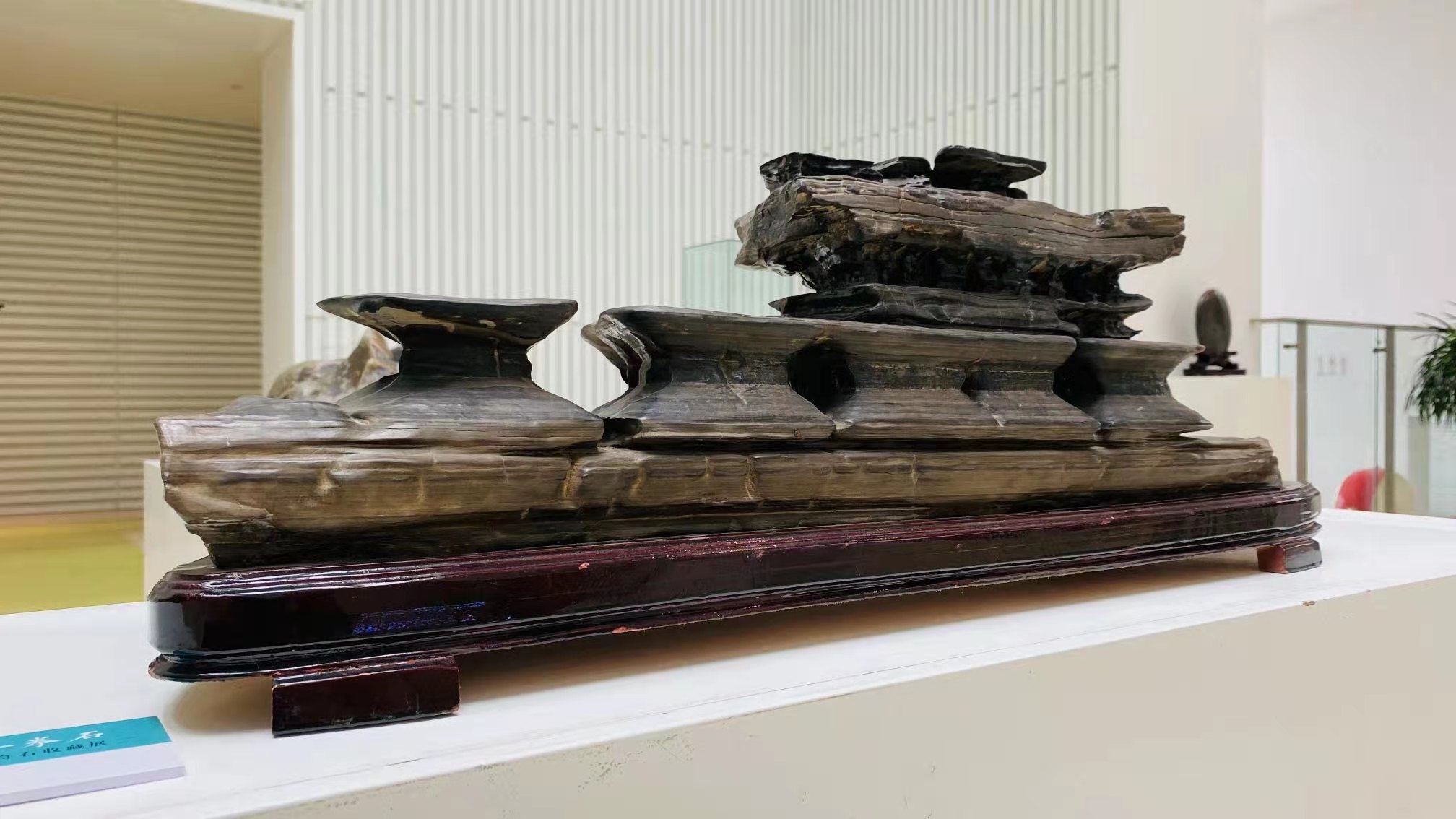 展览现场配以古琴演凑和茶艺展示,营造出沉静雅逸的展厅氛围。一石一趣,一石一品,或漏透瘦皱般婀娜,或壁立千仞般雄强,亦或江南春雨般温润,千江帆影,万壑松深,大漠落日,幽人神仙,万般影像融于拳石之中,让人百品不厌,流连忘返。琴声幽远,茶香萦绕,让观者发思古之悠心,叹造化之神工。