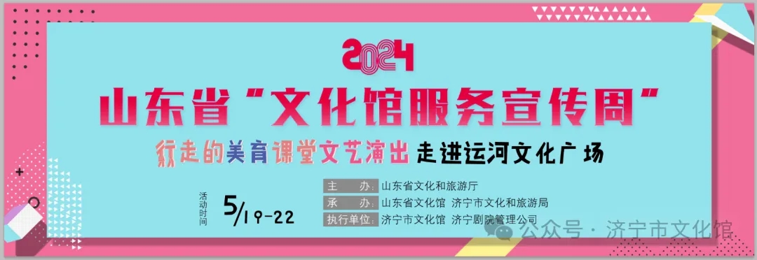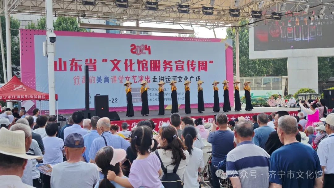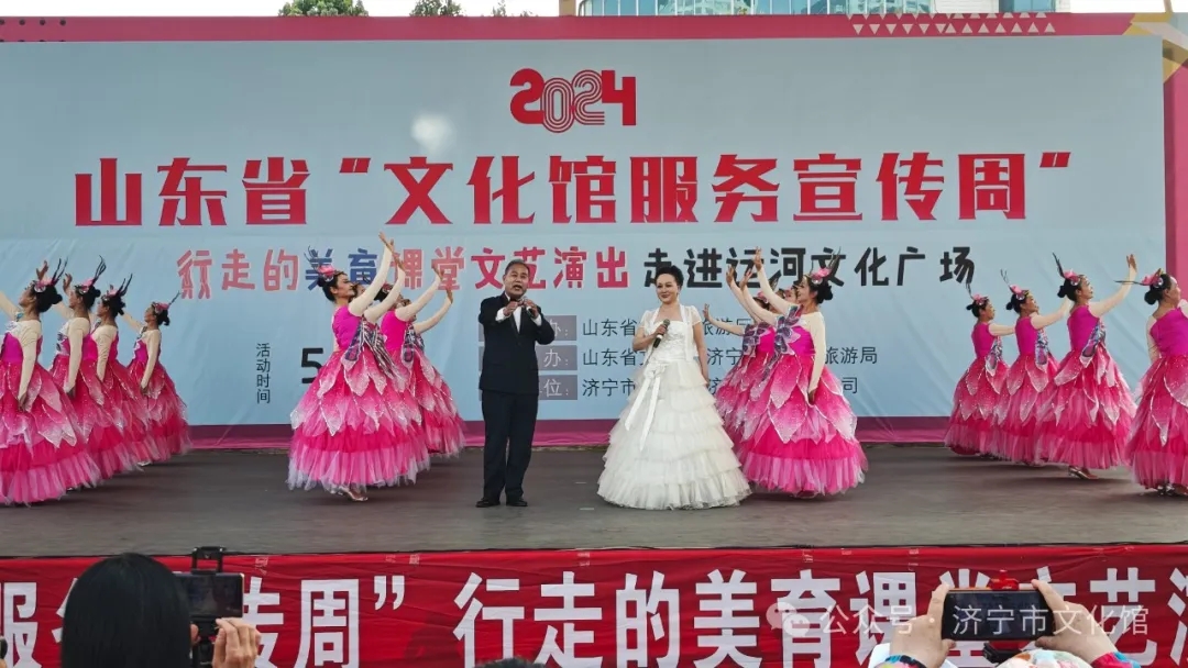 2024年5月22日下午,为深入贯彻落实习近平文化思想,进一步凝聚文化馆行业力量,提升行业影响力,做好2024年文化馆服务宣传周各项工作,由山东省文化和旅游厅主办,山东省文化馆、济宁市文化和旅游局承办,济宁市文化馆、济宁剧院管理公司执行实施的2024“行走的美育课堂”文艺演出走进运河文化广场活动(第三场)成功举办。