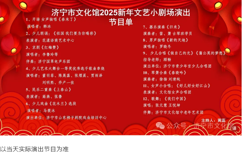 济宁市文化馆2025新年文艺小剧场演出邀您来观看