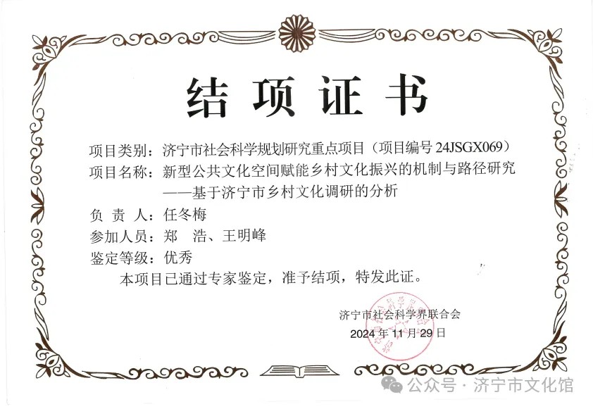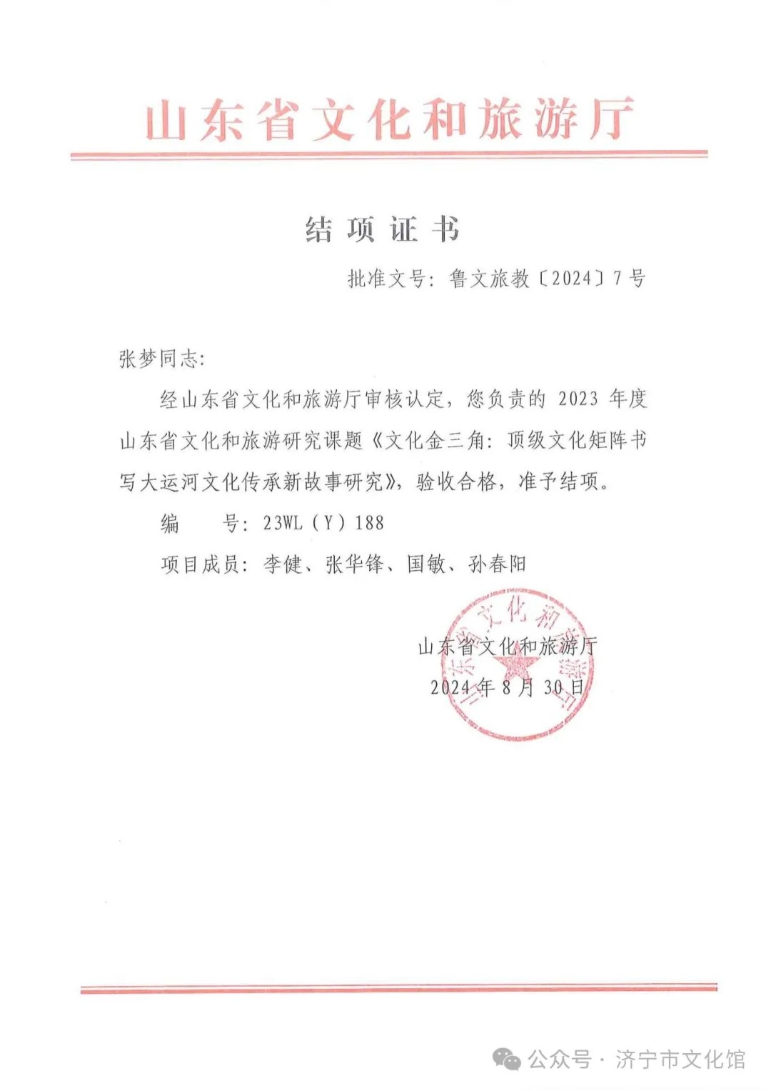 组建多个课题研究团队,开展课题研究工作,结项山东省文化和旅游厅课题1项,济宁社科课题2项。另外有多篇论文发表或在征文中获奖。