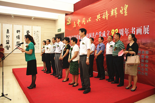 为深入贯彻落实党的十八大精神、丰富广大人民群众的精神文化生活,提高基层群众的艺术修养,更进一步激发广大群众爱党爱国的热情,任城区统战系统联合区海外联谊会、区美术家书法家协会、共同主办的“与党同心 共铸辉煌任城区统战系统庆祝中国共产党成立92周年书画展”于2013年6月30号在济宁市群众艺术馆隆重开幕!