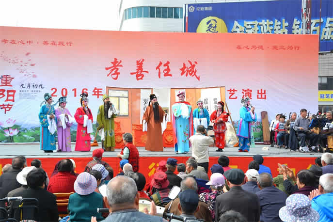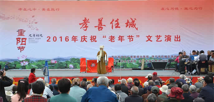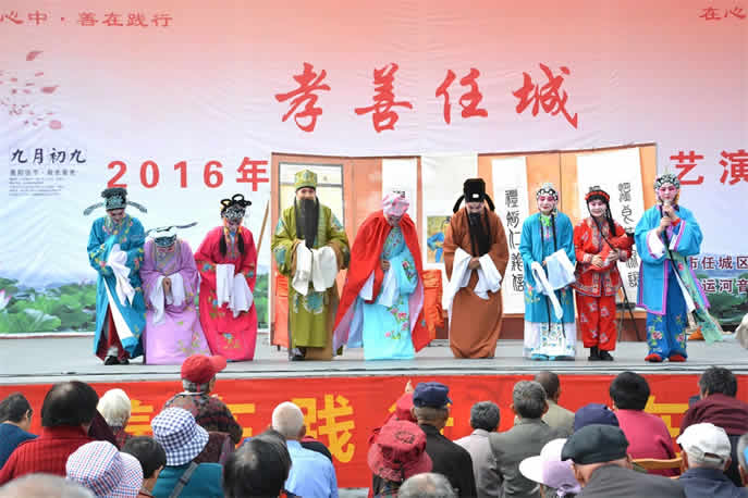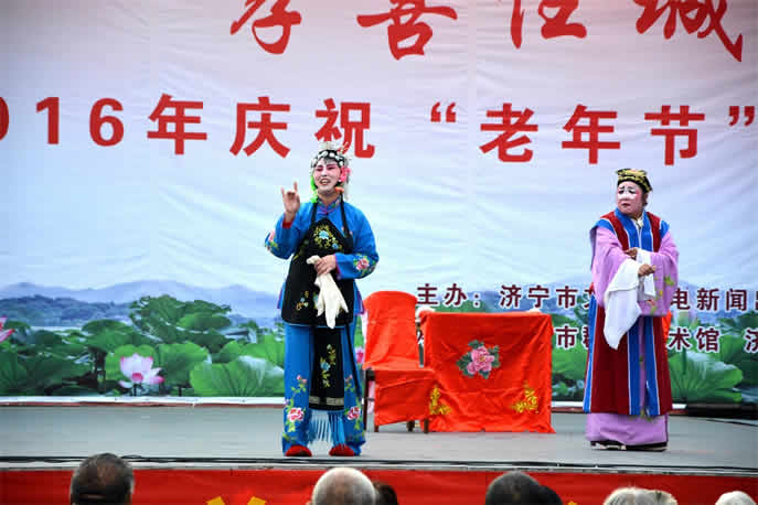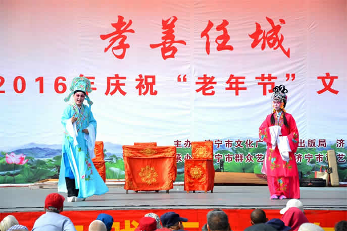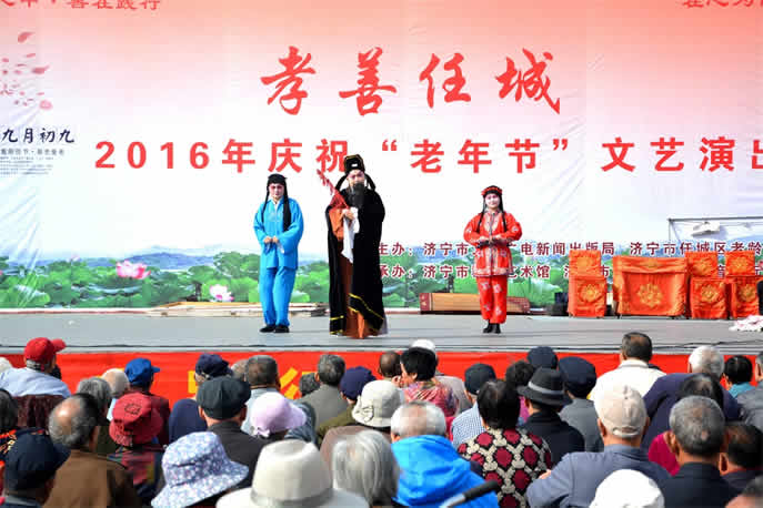 2016年10月8日--10日(九九重阳节)期间,济宁市群众艺术馆、任城区老龄委及群英艺术团,组织业余文化队伍及文化志愿者开展重阳节系列文化惠民活动。同时,由市艺术馆精心培育的山东梆子历史剧——《孝贤闵子骞》首次登台亮相。