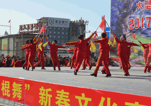 2月9日上午,济宁市群众艺术馆联合兖州区文化馆组织了15支花棍舞民间艺术队伍300余名文艺爱爱好者,在济宁文化广场进行专场展演,整场活动受到在场观众的热烈欢迎。兖州花棍舞是山东省非物质文化遗产项目,是中国民间艺术之乡——花棍舞之乡的传统文化活动品牌。花棍舞作为富有地方特色的民间舞蹈,具有广泛的群众基础,近年来,参加本次展演活动的队伍,在省内外群众舞蹈大赛中多次获得重大奖项。