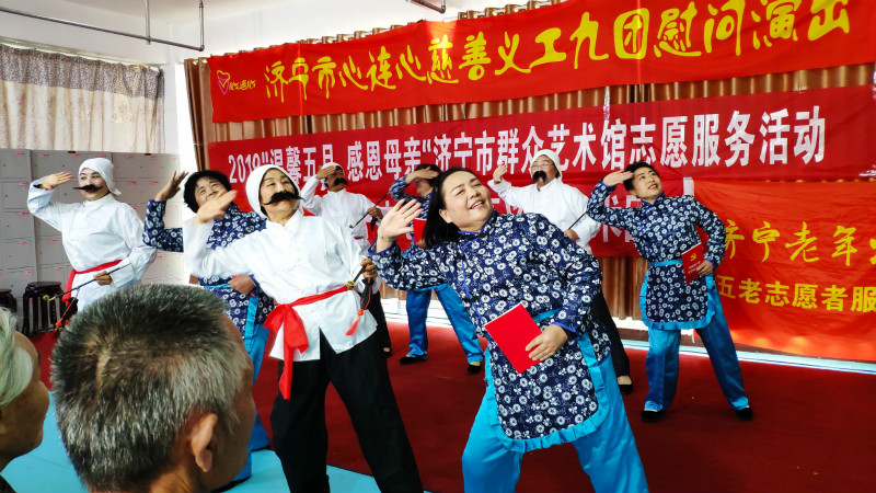2019年5月12日“温馨五月 感恩母亲” 文化志愿走进黄屯敬老院服务活动。为弘扬中华民族“敬老、爱老、孝老”的传统美德,营造感恩母亲的社会风尚,表达对母亲的节日祝福。近日,由济宁市群众艺术馆主办,老骥伏枥义演团、济宁慈善义工九团承办的2019“温馨五月 感恩母亲”新时代文明实践文化志愿服务活动在高新区黄屯敬老院成功举办。济宁市群众艺术馆文明实践分队的50多名志愿者用自己的实际行动诠释了“奉献、友爱、互助、进步”的精神。