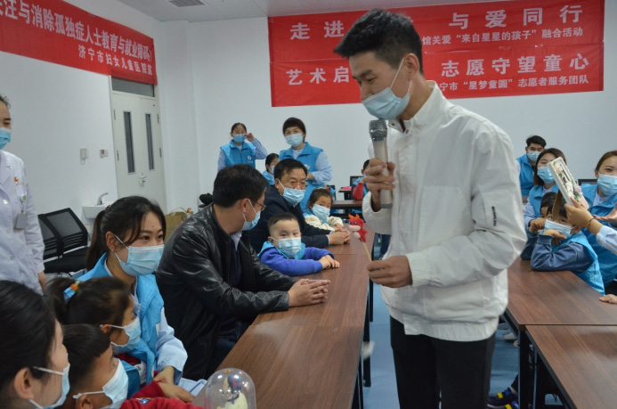 济宁市妇女儿童医院儿童康复中心主任赵淑珍代表科室和家长,感谢济宁市文化馆和爱心传承人的爱心,呼吁全社会对孤独症患者的关注,加深社会对孤独症儿童的了解,培育起一个有利于特殊儿童健康成长的良好社会文化氛围,为他们提供更加良好的社会环境。