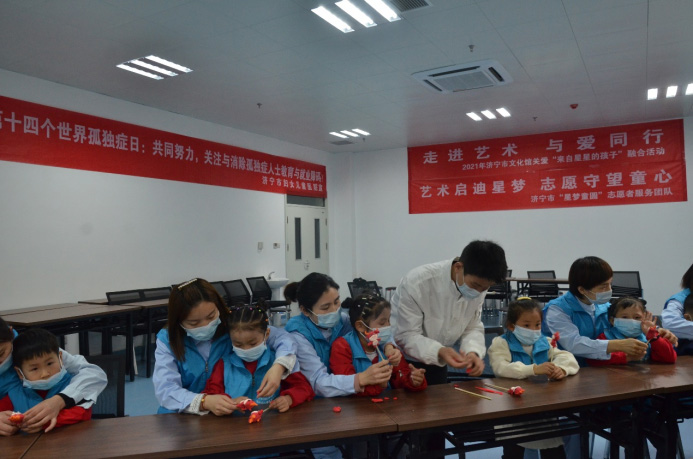 4月2日我们即将迎来第十四个世界孤独症日,今年的主题是“共同努力,关注与消除,孤独症人士教育与就业障碍”。济宁市文化馆携手济宁市妇女儿童医院举办孤独症儿童的社会融合和兴趣培养活动。