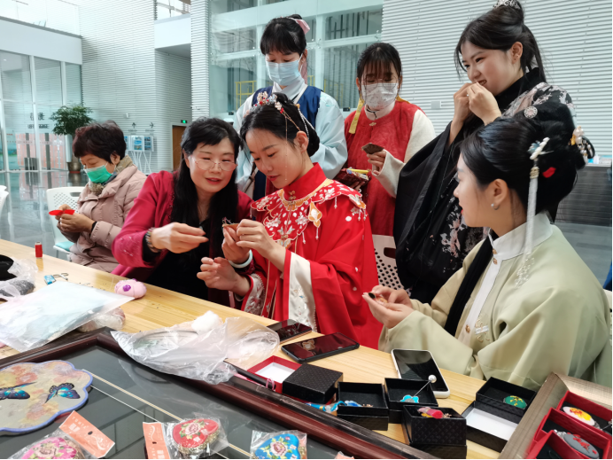 巡游结束,各类体验活动自由开展,刺绣传承人为大家带来了香包刺绣体验,大家一针一线沉浸其中,很多小朋友也在老师的指导下进行制作,拿着自己制作的香包作品,大家都感觉无比快乐。