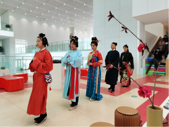 此次活动是济宁市文化馆“新市民·新生活”艺术沙龙系列活动之一。活动以展示汉服文化为核心,融合茶艺、刺绣、古琴、奇石等元素,营造出古典、雅致的活动空间。现场节目内容丰富、形式多样,群众参与热情高涨。 汉服走秀活动于上午10点开始,60多名汉服爱好者身着汉服围饶场馆缓缓巡游,或飘逸素雅,或雍容华贵,或可爱顽皮,生动展示汉服的独特魅力,引来了无数摄影爱好者与游玩市民的关注,把本次活动推向了一个小高潮。