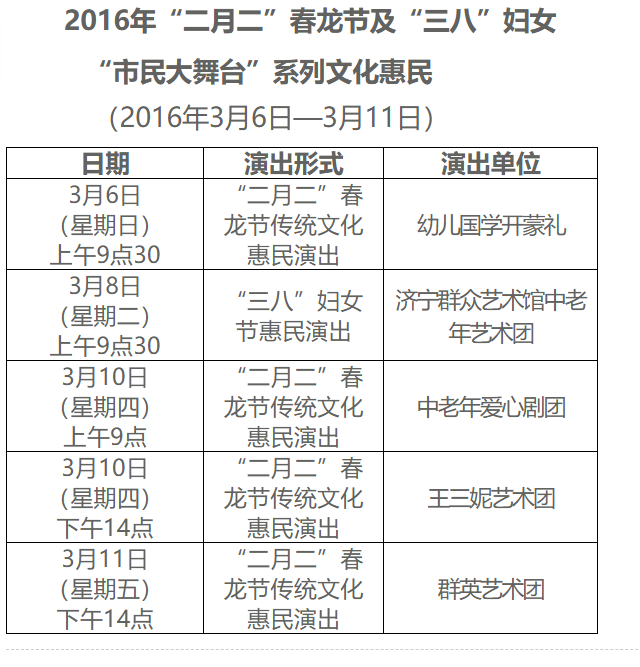 | 济宁市群众艺术馆2017新年春节期间文化惠民活动安排08-30 | |
