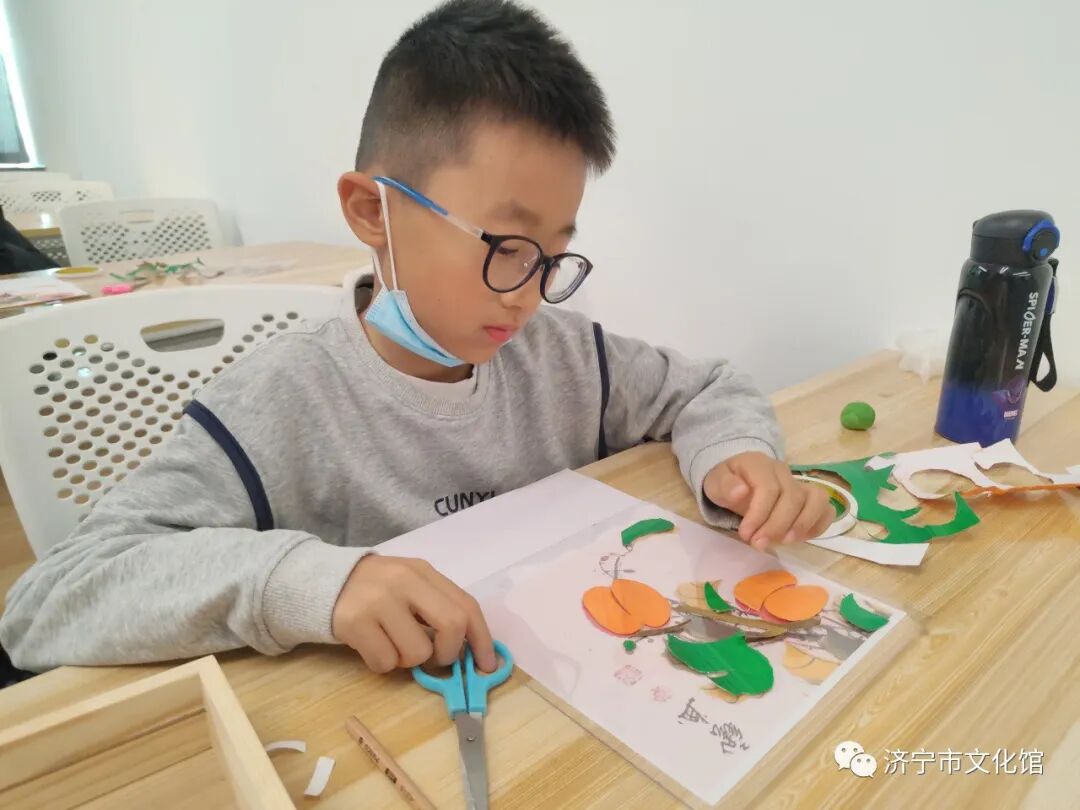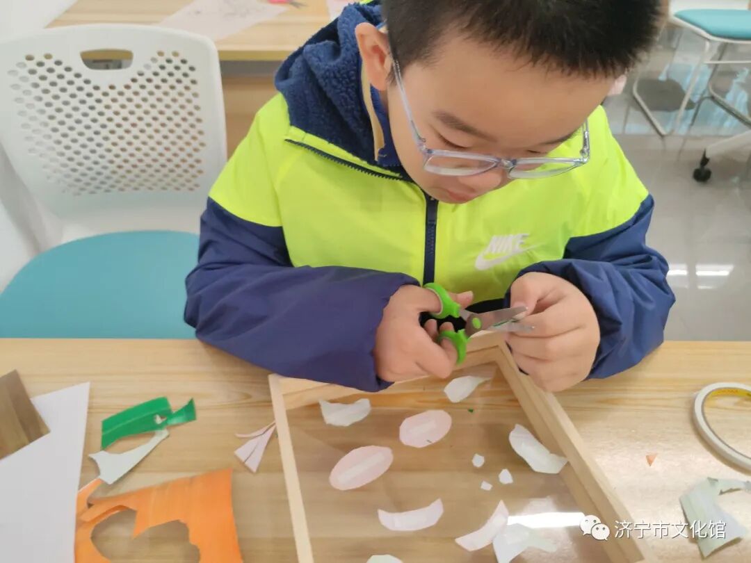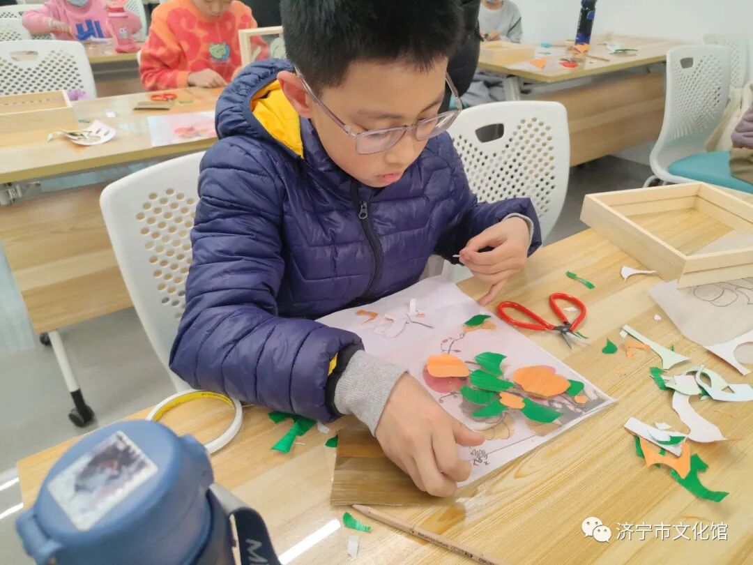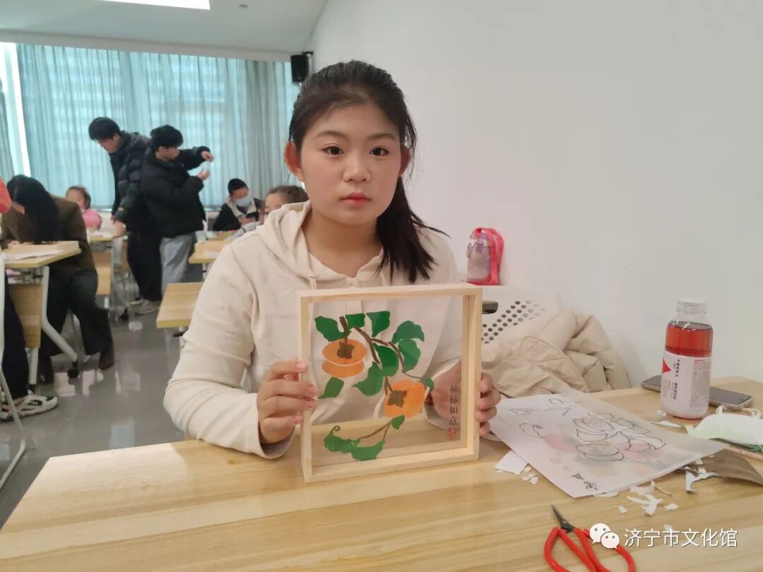 ——刻麦舞金·绘丰稔—— 12月2日,济宁市文化馆【节气里的非遗】“跟着非遗游黄河”非遗手造系列活动如约而至。本次活动带大家来到黄河旅行的第二十站——濮阳市。我们开启了濮阳市“富锦斋麦秆画”非遗主题课程的学习。 大雪至,寒冬始,在这仲冬正式开始的时节,老师向同学们讲述了麦秆画的起源和发展脉络,让同学们领略到麦秆艺术、传统文化的多样性。 活动开始,老师带领同学开启了一场探索民间工艺品之旅,从农耕时代的皇家珍藏,到如今工艺精湛的艺术作品,通过探寻麦秆画工艺的发展历程,同学们深刻体会到麦秆画不仅是一门传统手工技艺,更是一个时代的印记。 为了让同学们对麦秆画有更深层次的理解,老师演示了麦秆画的制作步骤,从绘形、修剪到粘贴入画。同学们用手中的麦秆,将自己的思绪与创意融入其中,完成了一幅幅柿柿如意的麦秆画作品。每一根麦秆都如同一笔一划的艺术语言,精妙地编织成独特的画卷。 画面转印 裁剪整备 画面粘贴 成品展示 本次活动,同学们通过麦秆画创作真挚地表达了对农田馈赠的感激。这不仅是非物质文化遗产的传承,也凸显了传统农耕文化的价值。通过实践,我们致敬传统文化,为非遗注入新的时代内涵,以现代的眼光赋予其新的生命。