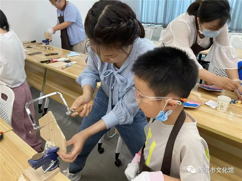 活动中,自己动手锯切、打磨、上色,小小时钟渐渐成型。过程中使用多种木工工具,融合着传统技艺中的匠心理念,在传统与现代的融合,让这一刻凝固在这小小的一方天地之间。